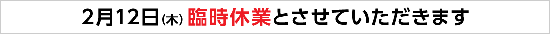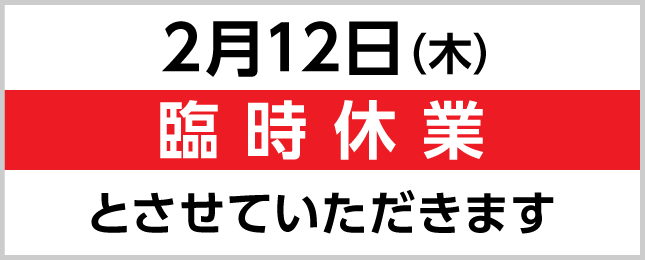 社内行事のため2026年2月12日(木)は臨時休業とさせていただきます。お客様にはご不便をおかけして申し訳ありませんが何卒ご了承をお願い申し上げます。